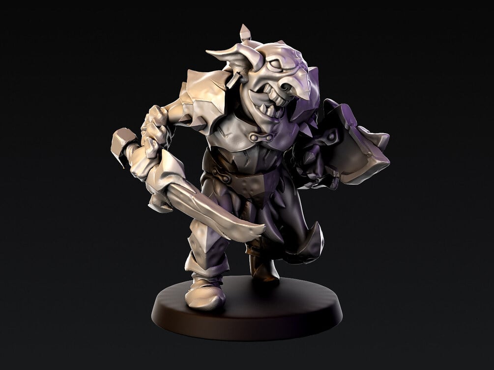 3D printable pre-supported Goblin Scrapper. 32mm in scale.