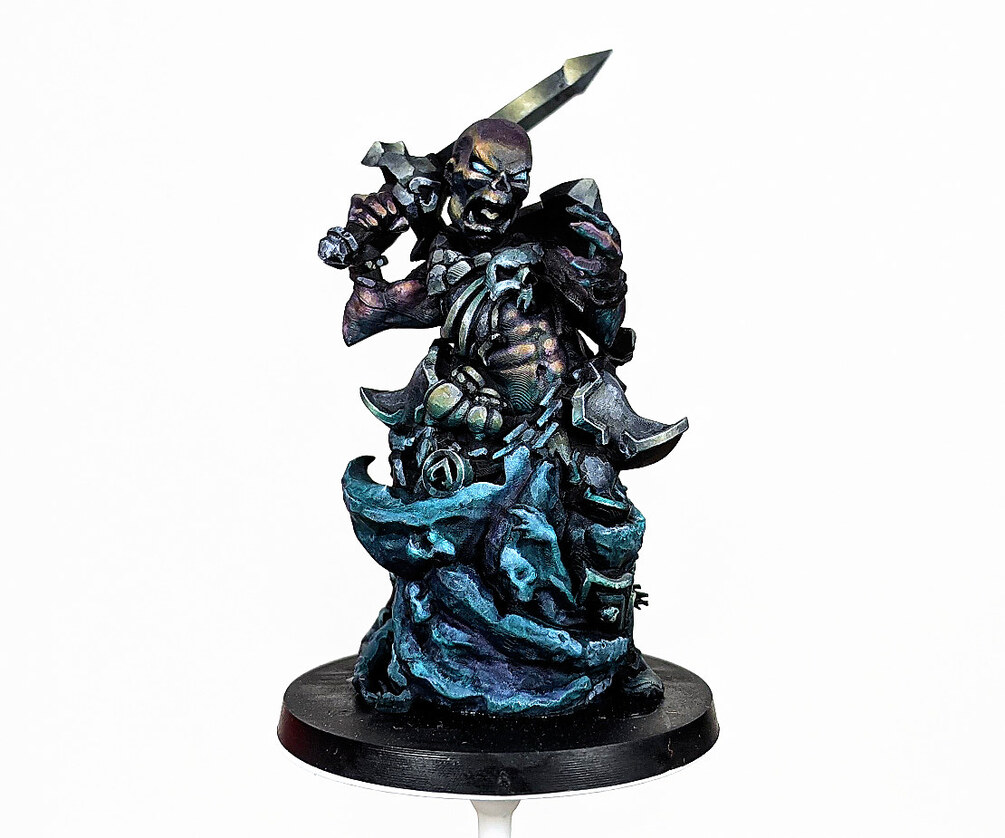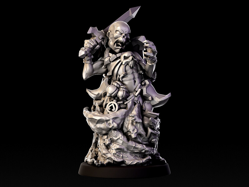 3D printable pre-supported Necromancer, enjoy! about 55mm from the base to the top of the sword.